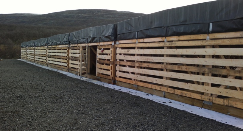 Each HBA tile is covered with a UV-resistant polyurethane cover. This secures the white polystyrene lids and provides protection against precipitation. In order to connect the cover to the timber frames, O-rings are connected from the cover edge down to S-hooks that attach to the screws in the timber. However in order to attach the covers to the O-rings, special rods called "staafjes" (Dutch for "little staves") are inserted into the folded cover edge.